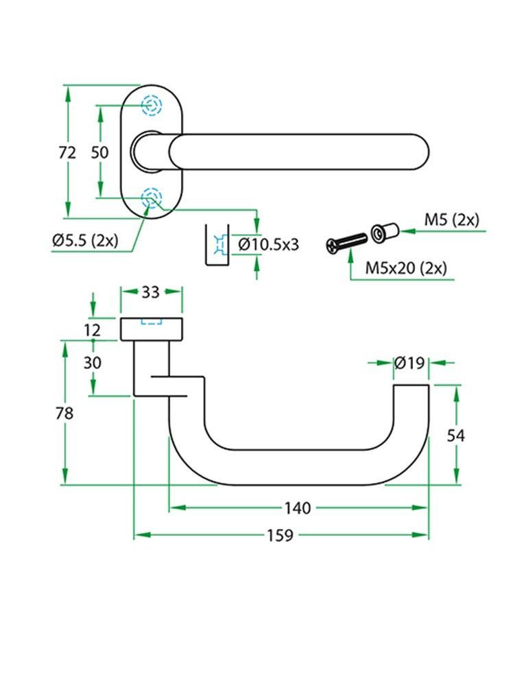 De deurkruk wordt geleverd inclusief rozetten en is eenvoudig te monteren op standaard binnendeuren. Dankzij de stevige bevestiging blijft de kruk goed op zijn plaats en werkt deze soepel.