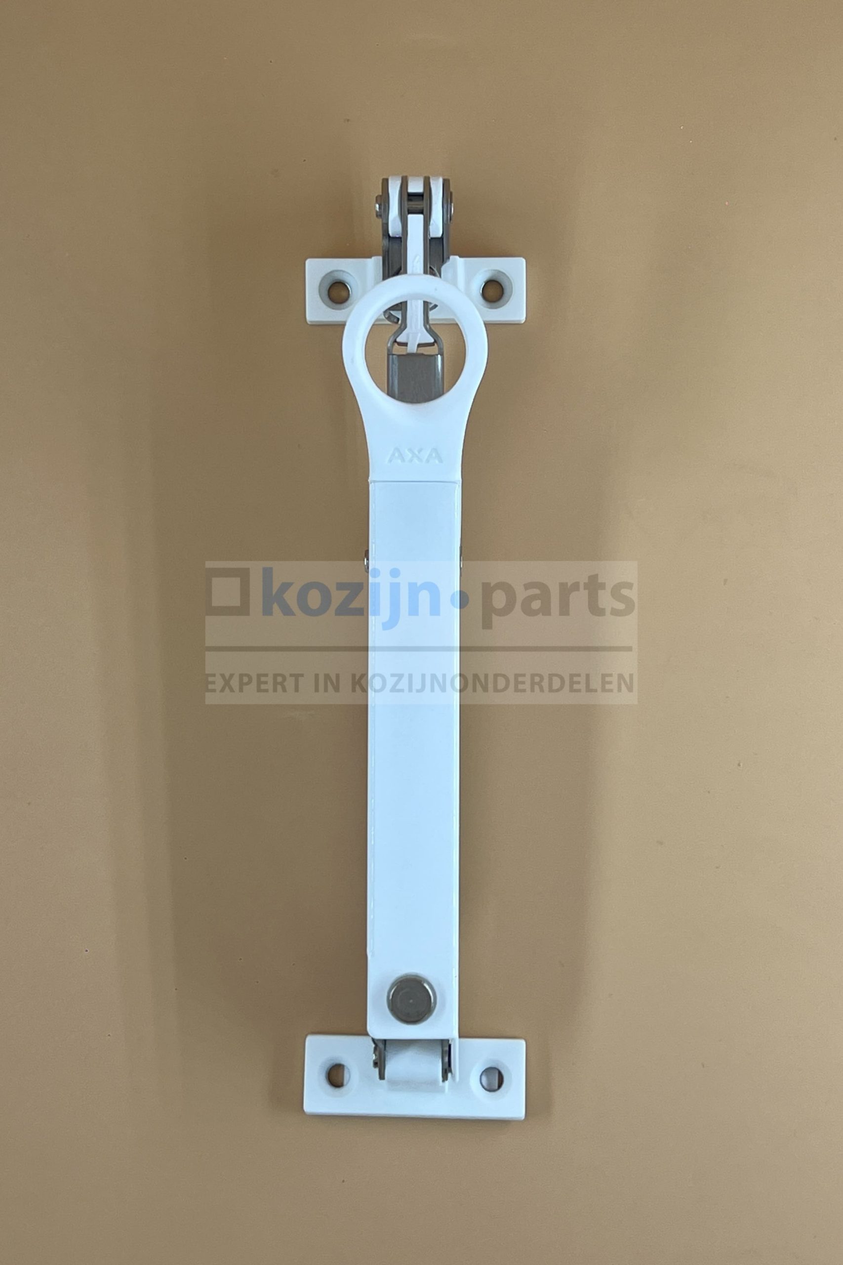 De AXA-Flex RVS/WIT is een hoogwaardige raamuitzetter ontworpen voor naar buiten draaiende bovenlichten en uitzetramen. Deze uitzetter combineert een roestvrijstalen arm met witte bevestigingsdelen, waardoor een stijlvolle en duurzame combinatie ontstaat die past bij witte en lichtkleurige kozijnen. De AXA-Flex staat bekend om zijn betrouwbare werking en eenvoudige montage.