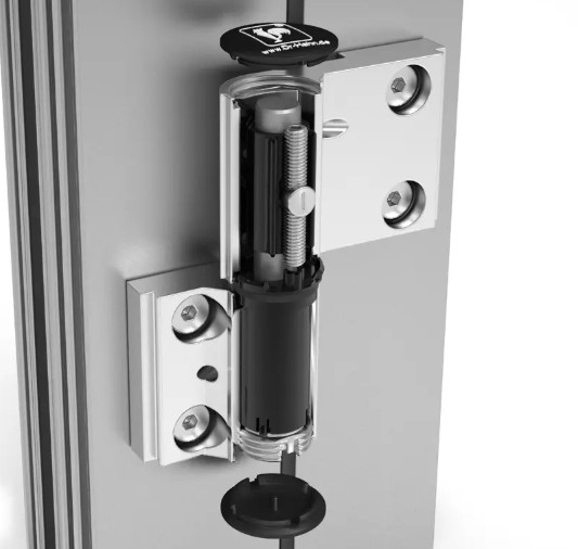 Dit scharnier is bestemd voor aluminium kozijnprofielen met een hartmaat kozijnbevestiging tot draaipunt van 41.5mm, hartmaat deurbevestiging tot draaipunt van 44.5mm en een kozijn/deur tot hart draaipunt van 20mm. Het wordt geleverd zonder bevestigingsdelen; deze dienen apart te worden besteld, bijvoorbeeld de DR. HAHN spreidbussen set.