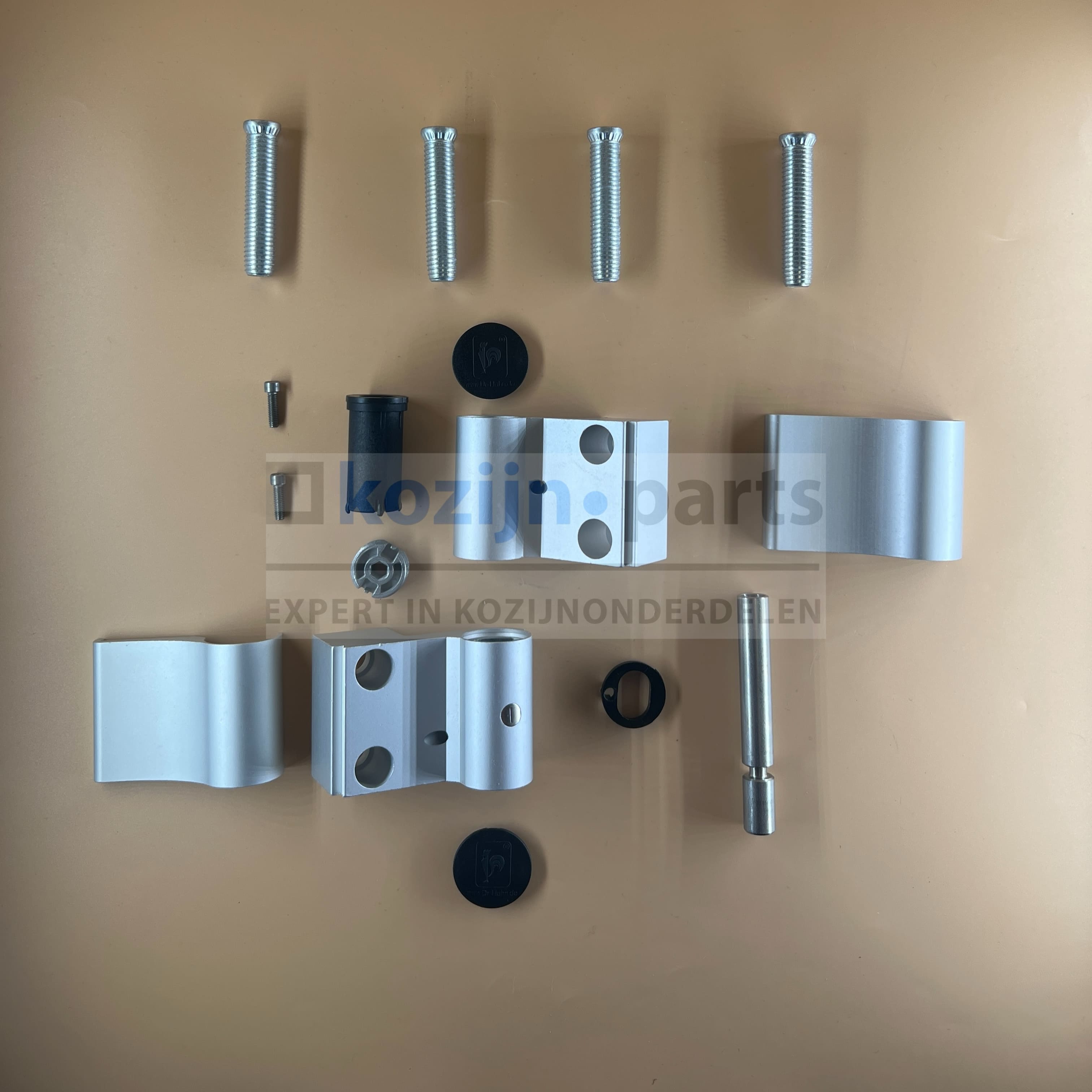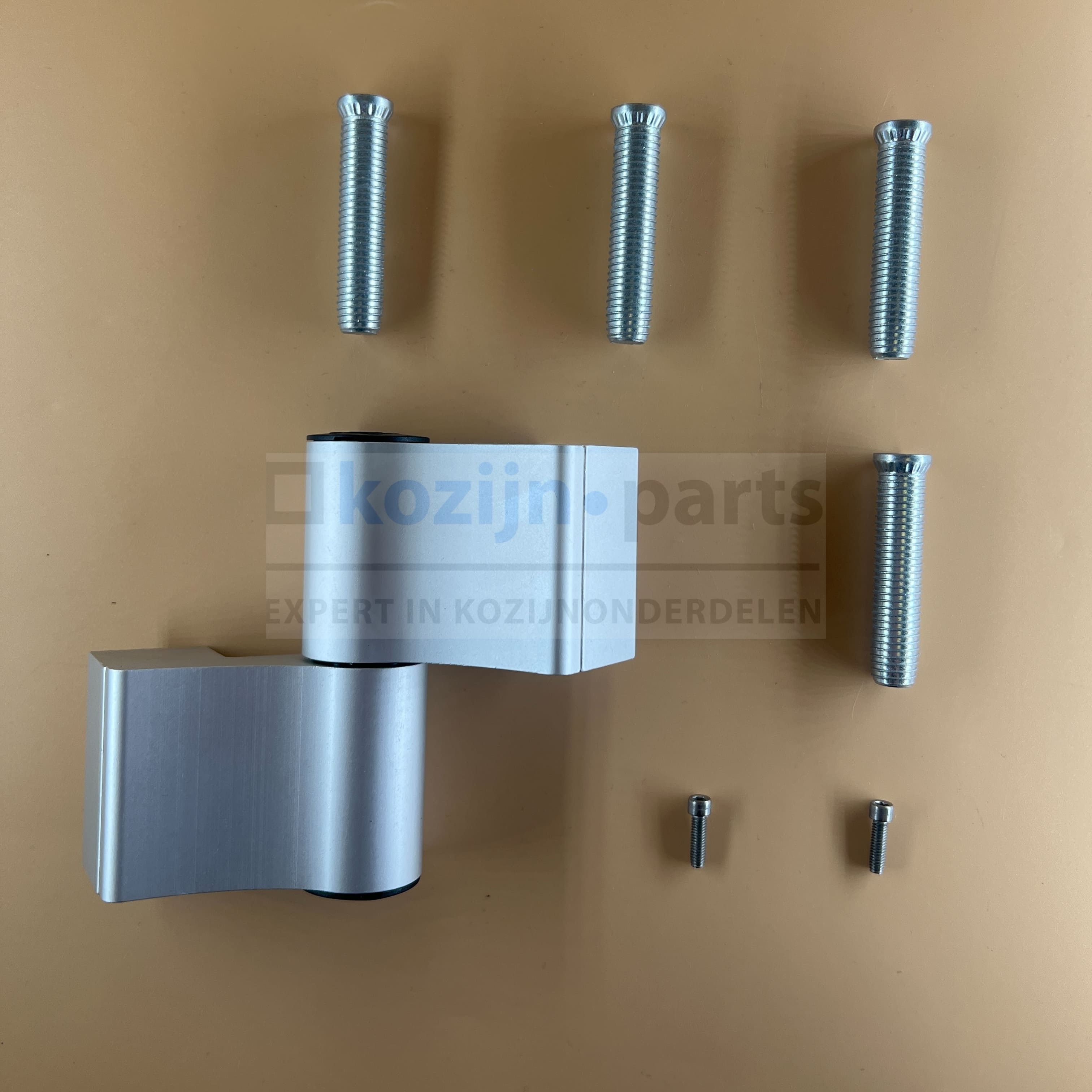 Türband 4, 2-delig scharnier voor aluminium kozijnprofiel. Hartmaat bevestiging kozijn tot hartmaat draaipunt 41.5mm, hartmaat bevestiging deur tot hartmaat draaipunt 44.5mm, kozijn/deur tot hart draaipunt 36mm. (Wordt geleverd zonder bevestigingsdelen.)