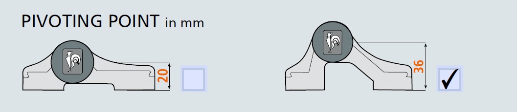 • Kozijn/deur tot hart: 36mm