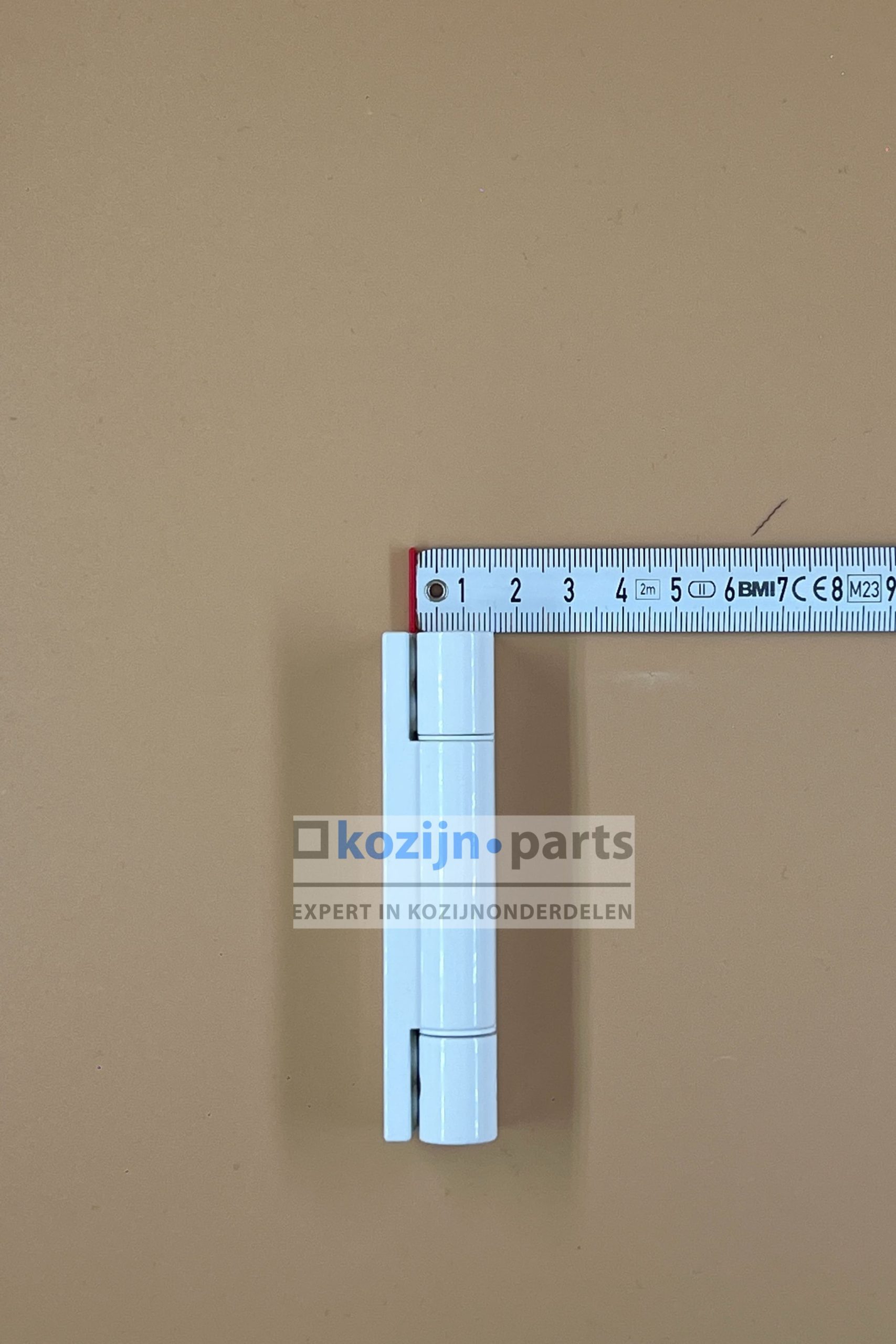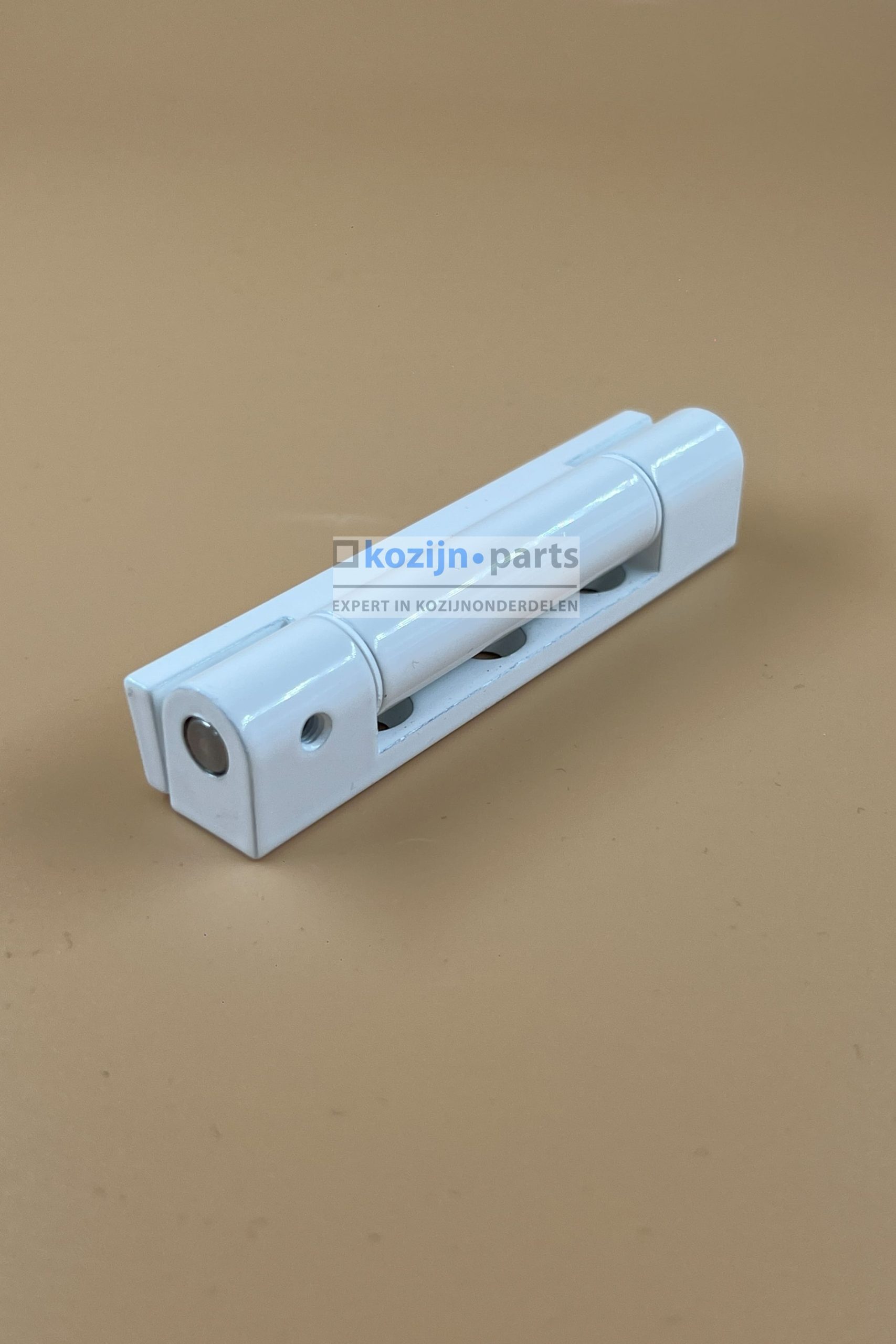 Scharnier bestaat uit 3 delen waarvan een schroefdeel voor het kozijn, een schroefdeel voor de vleugel en een stift voor het koppelen van de scharnieren. Daarnaast kan de stift worden geborgd door de meegeleverde inbus-schroef.