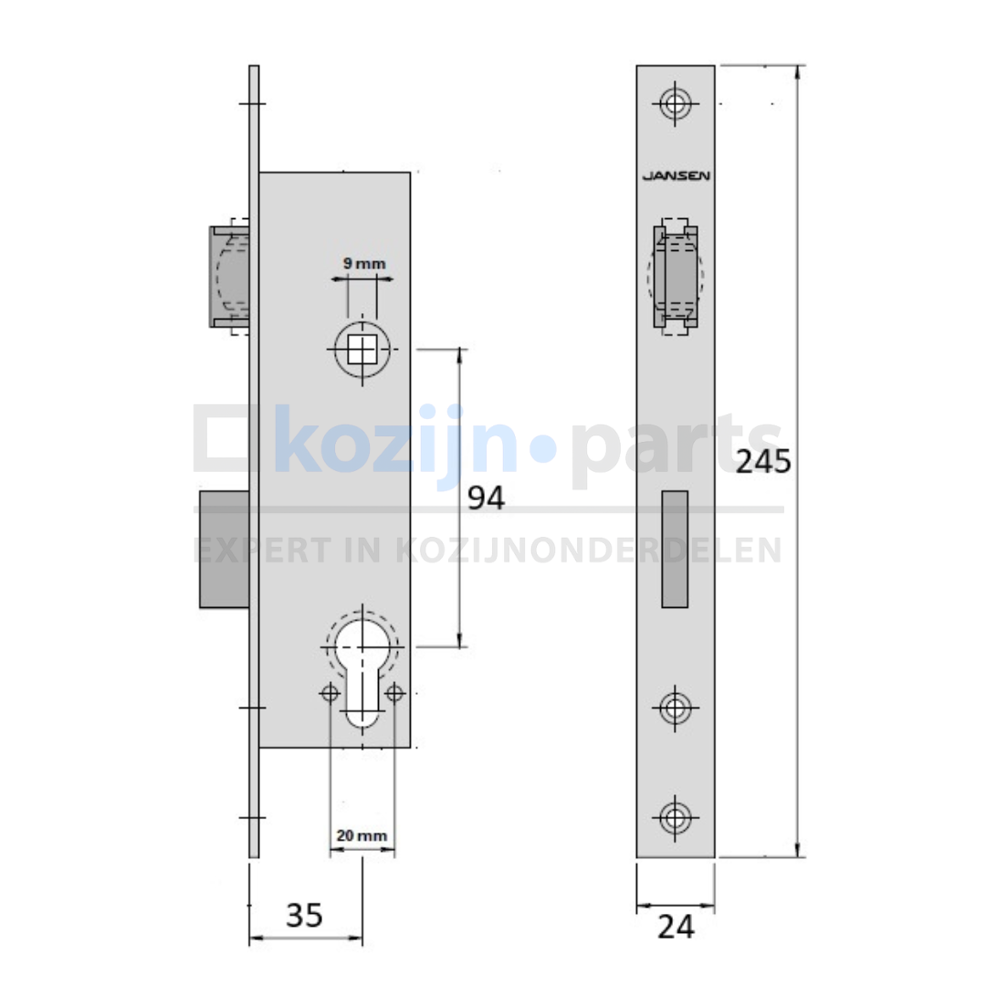 JANSEN anti-paniekslot B DM35/PC92/245x24mm, DIN L, cil 17ø | Kozijn Parts