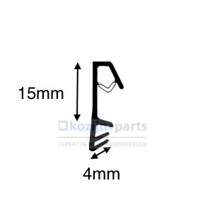 Kaderdichting voor houten profielen, vleugelaanslag 15mm en 4mm groefdikte. (Met verwijderbare koppelstrip.)