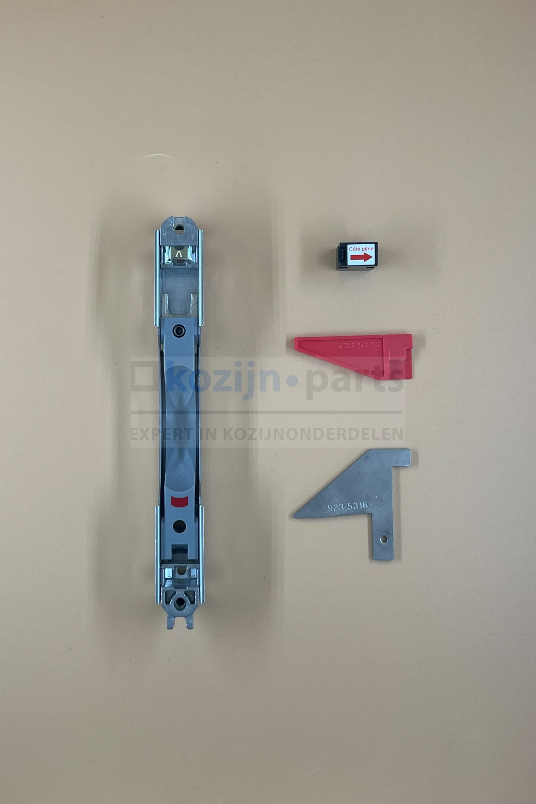 Dit haakslot wordt toegepast in aluminium schuifpuien van Kawneer als primair vergrendelingsmechanisme. Het slot grijpt met een haak in de bijbehorende sluitkom, waardoor het schuifpaneel stevig op zijn plaats wordt gehouden. Geschikt voor nieuwbouw en als vervangingsonderdeel bij onderhoud van bestaande Kawneer schuifpuisystemen. Combineer dit haakslot met een Kawneer sluitkom voor een compleet werkend sluitsysteem.