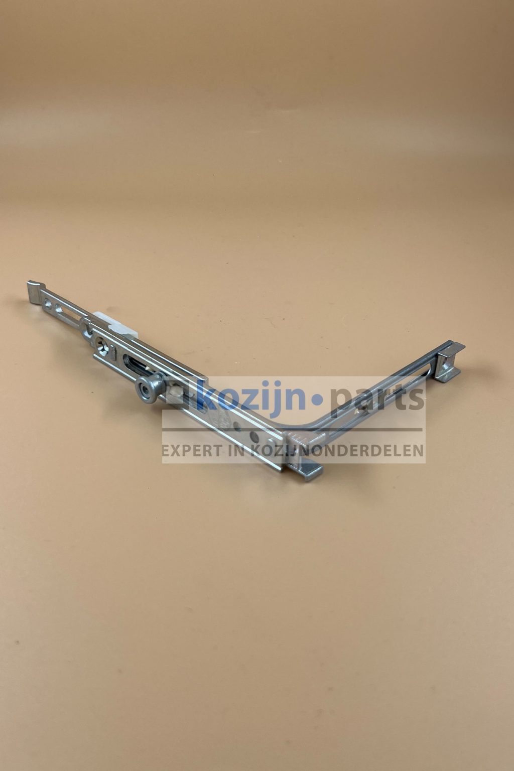 De hoekoverbrenger wordt gemonteerd op de hoek van de hangzijde van het raam en zorgt voor de overdracht van de beslagbeweging van de verticale naar de horizontale beslag-groef. Met een lengte van 115mm past deze hoekoverbrenger bij compacte raamconstructies. De verstelbare paddenstoelnok biedt de mogelijkheid om de aandruk nauwkeurig af te stellen. Door de koppelmogelijkheid met een schaarvergrendeling kan de inbraakwerendheid verder worden verhoogd.