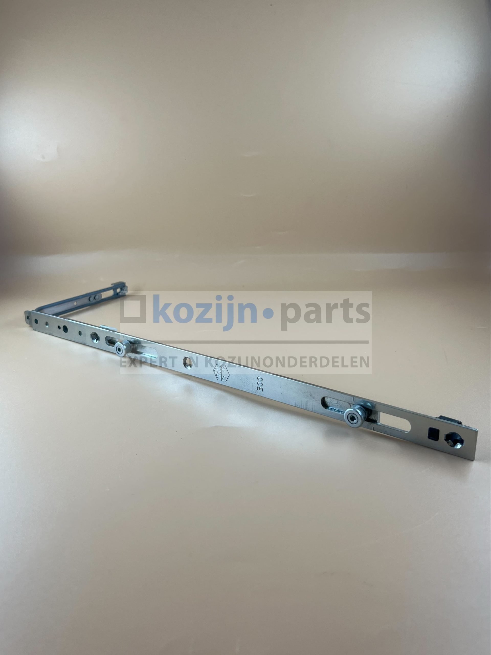 De MACO MultiTrend eindvergrendeling 300 is ontworpen voor draai-kiepramen met een falzhoogte van 601 tot 750 mm en een falzbreedte van 481 tot 600 mm. Dit beslagonderdeel biedt betrouwbare vergrendeling aan de onderzijde van de raamvleugel dankzij twee verstelbare sluitnokken die zorgen voor optimale aandrukkracht en afdichting.