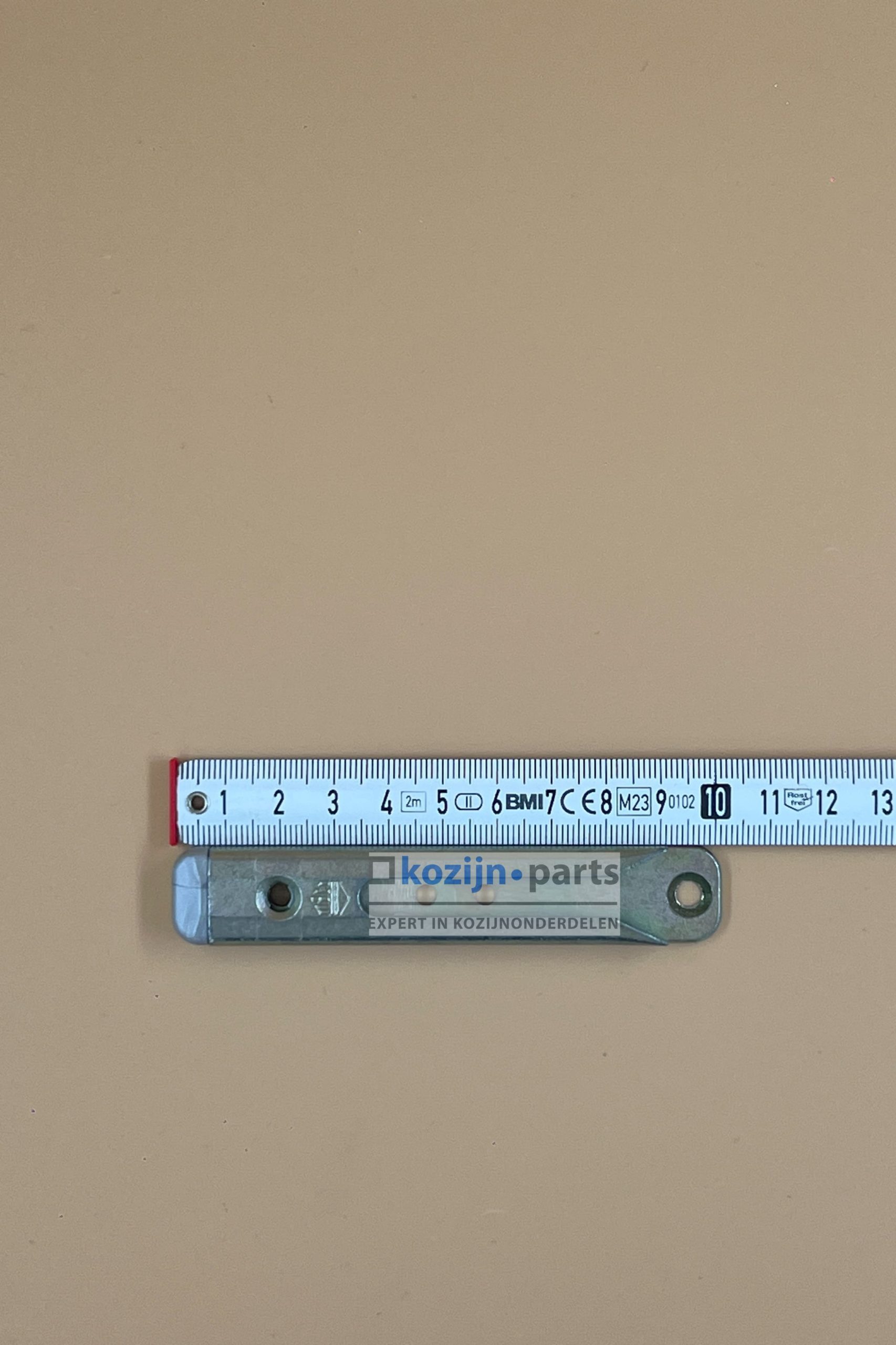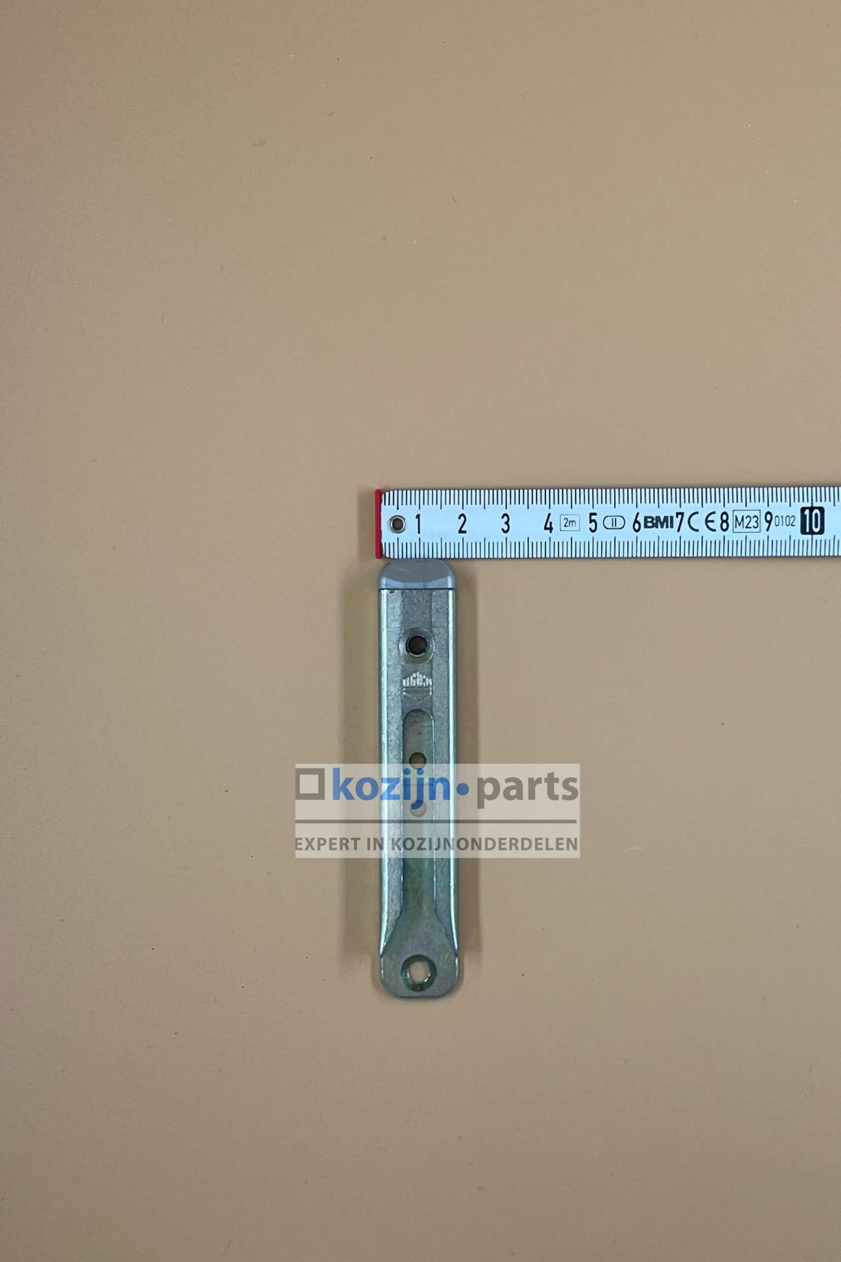 De MACO kiepplaat vlak 17mm is een essentieel onderdeel dat de bijzetschaar of hulpschaar vasthoudt wanneer het raam in kiepstand staat. Deze vlakke kiepplaat met een dikte van 17mm wordt op het kozijn gemonteerd en vormt het draaipunt voor de bijzetschaar. Een onmisbaar component in het draaikiep-beslagsysteem voor houten kozijnen.