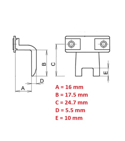 • Maatvoering: 16 / 17,5 / 24,7 / 5,5 / 10 mm