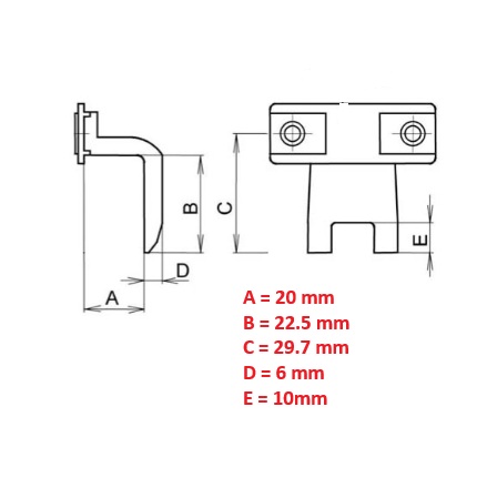 Maatvoering: 20 / 22,5 / 29,7 / 6 / 10 mm