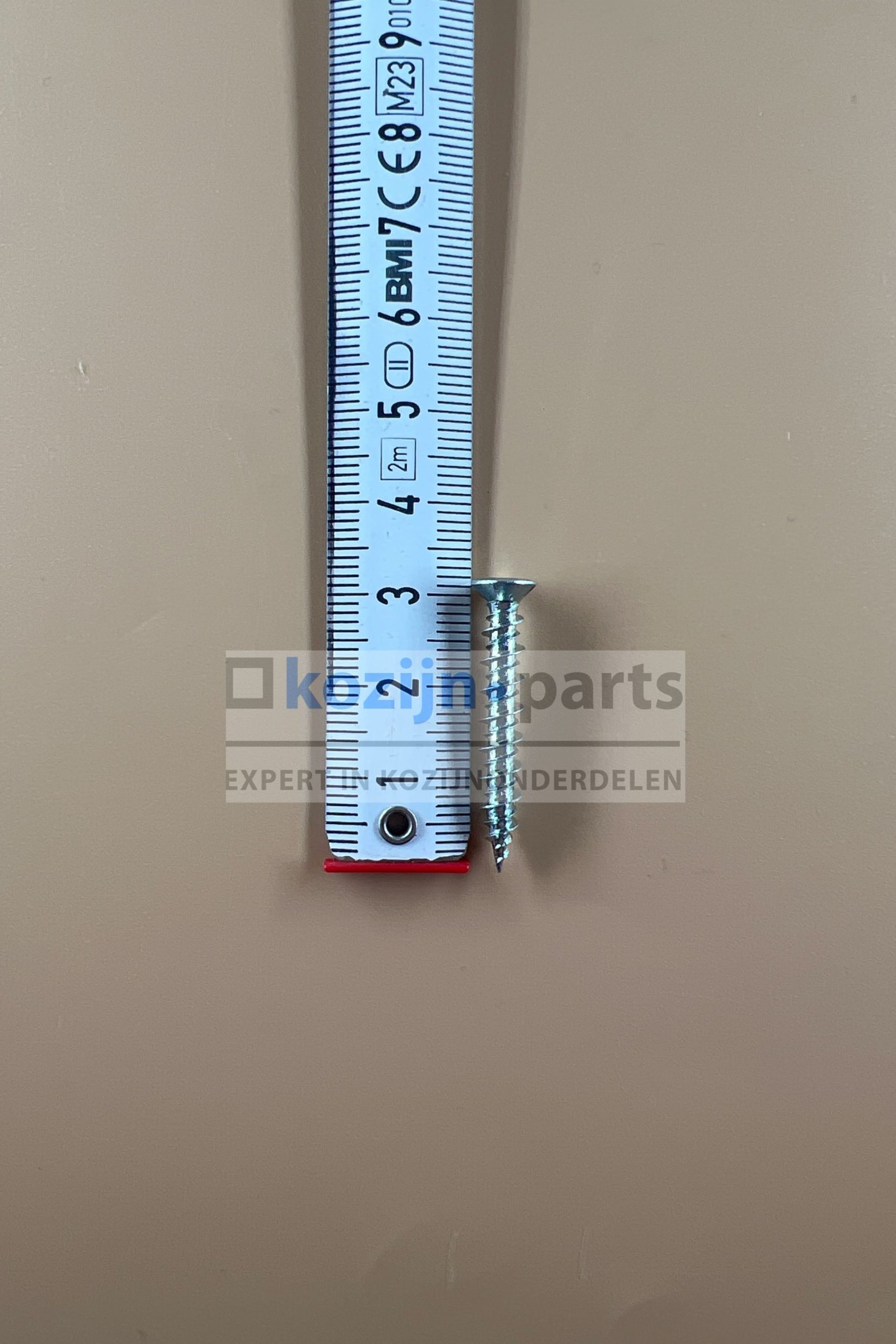 Deze beslagschroef is de aangewezen keuze wanneer beslag moet worden bevestigd in kozijnen die al eerder zijn bewerkt. De 32mm lengte biedt meer inschroefdiepte dan de 25mm variant en is geschikt voor het monteren van scharnieren, sluitplaten, deurgrepen en ander kozijnbeslag. De verzonken kop verdwijnt netjes in de verzonken gaten van standaard beslagonderdelen. Per doos van 1000 stuks verkrijgbaar.