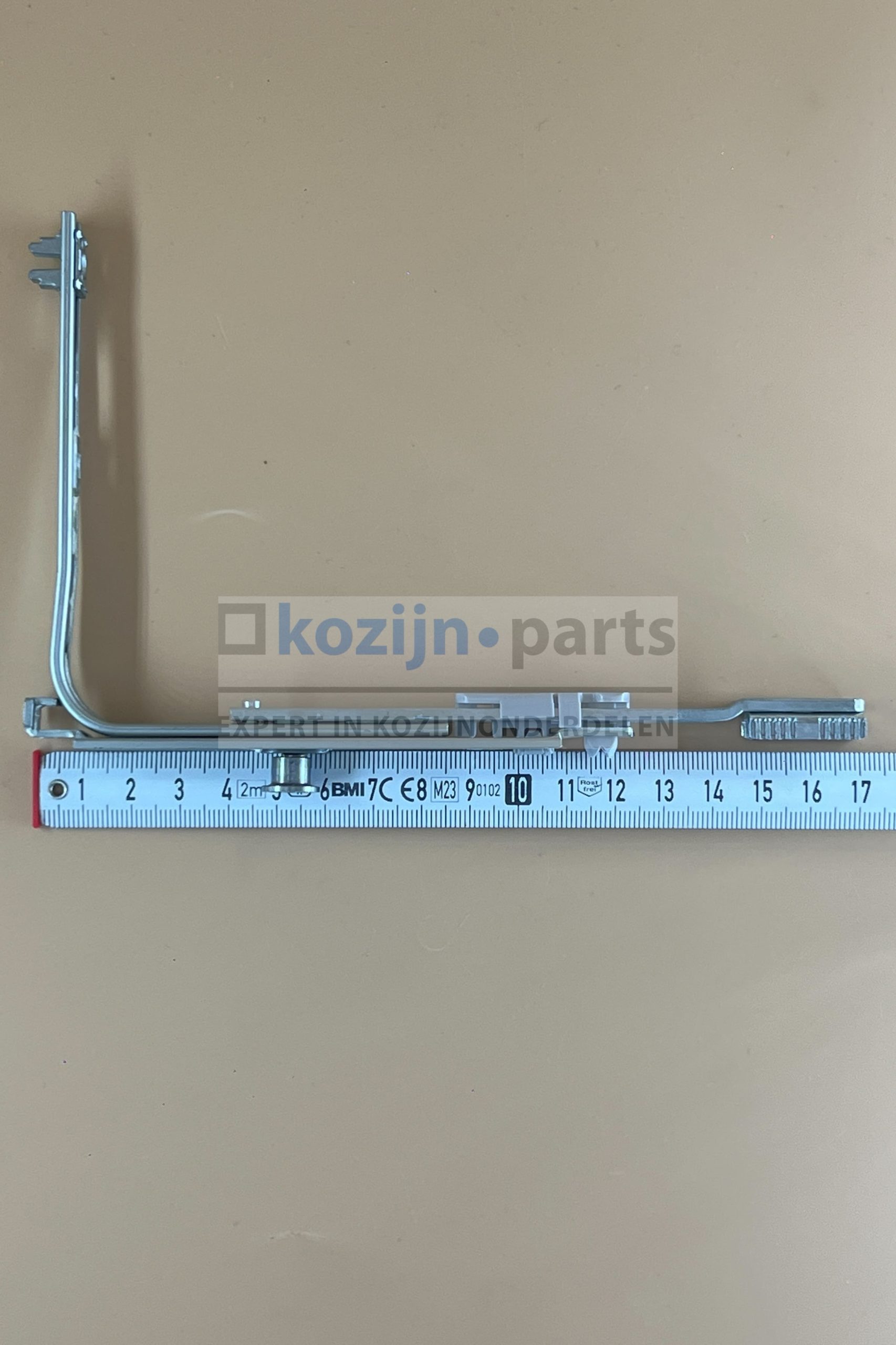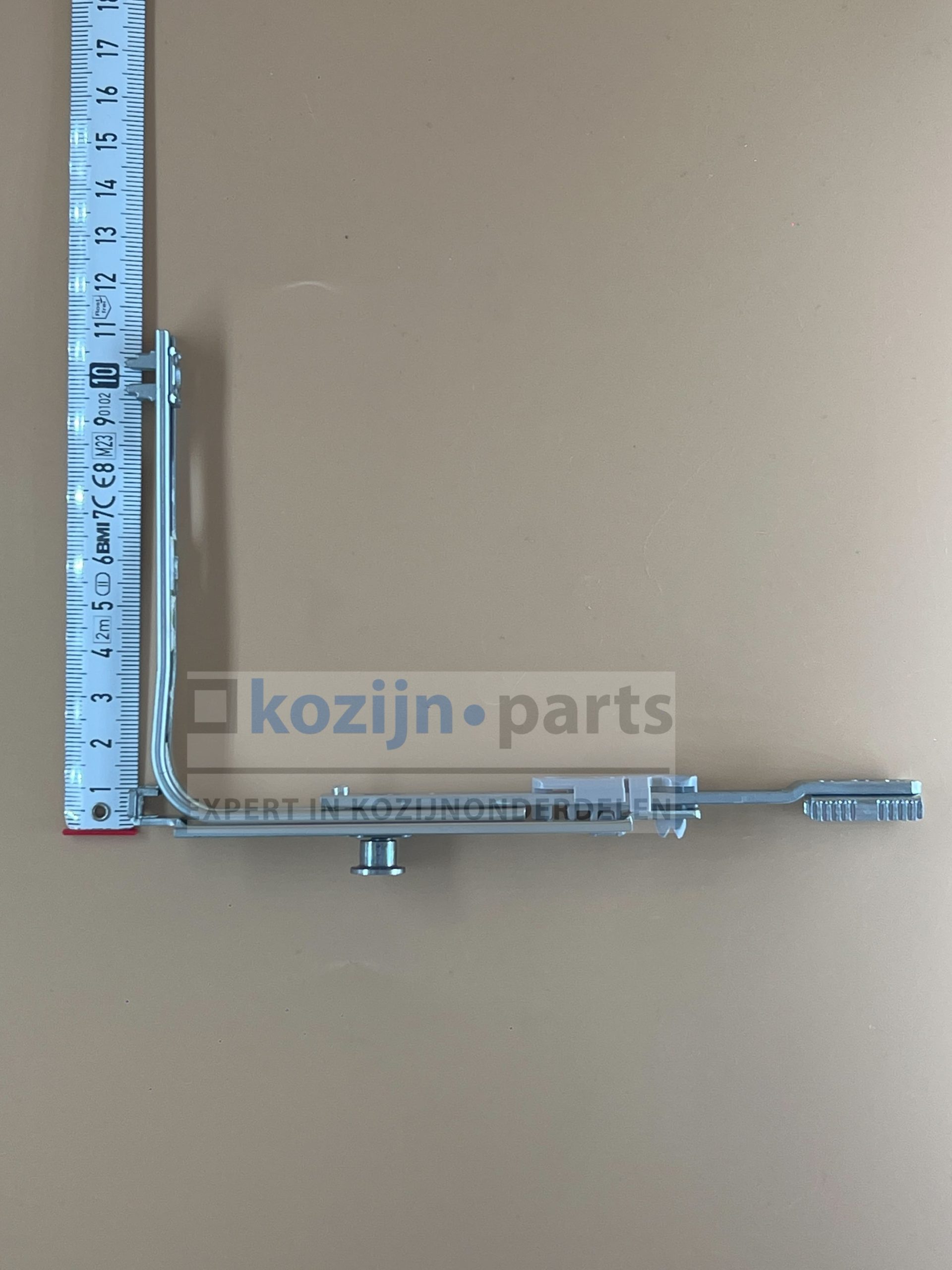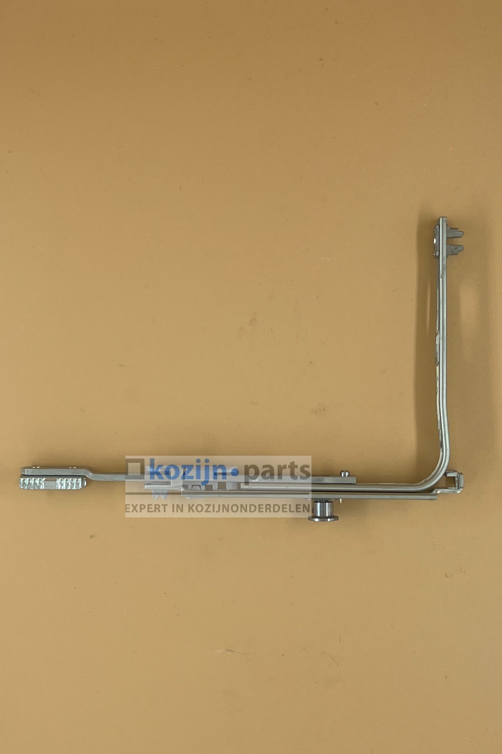 Deze hoekoverbrenger wordt gemonteerd op de onderhoek van de sluitkant van de vleugel, waar de espagnolet overgaat naar de onderzijde van het raam. De V-nok zorgt voor een aanvullend sluitpunt op deze positie, wat bijdraagt aan de algehele luchtdichtheid en inbraakwerendheid van het venster. Specifiek bestemd voor espagnoletten met vaste koppelgreepmaat.