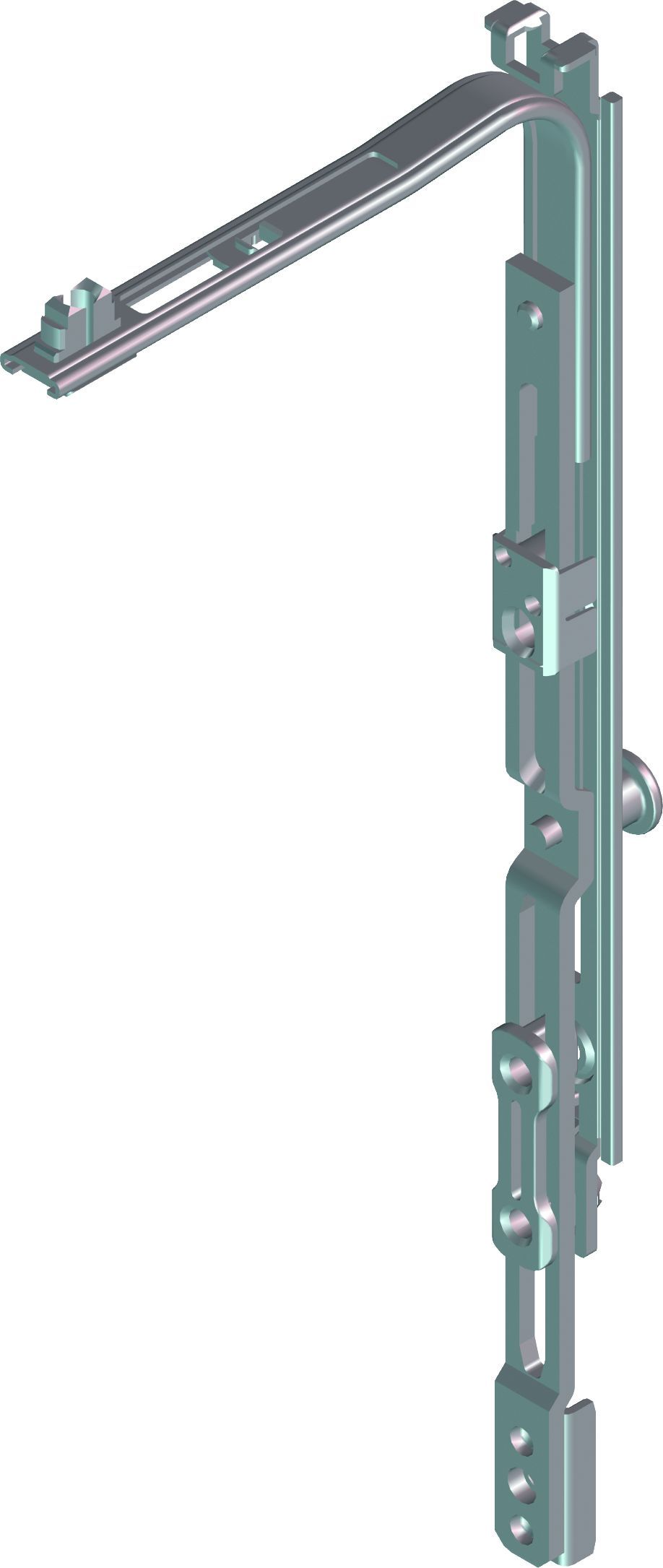 NX/NT schaar hoekoverbrenger standaard voorzien van 1 V-sluitnok. Geschikt voor de scharnierzijde is te koppelen aan de schaarvergrendeling en te verlengen aan de hangzijde. Voor beslagbreedtes vanaf 801mm.