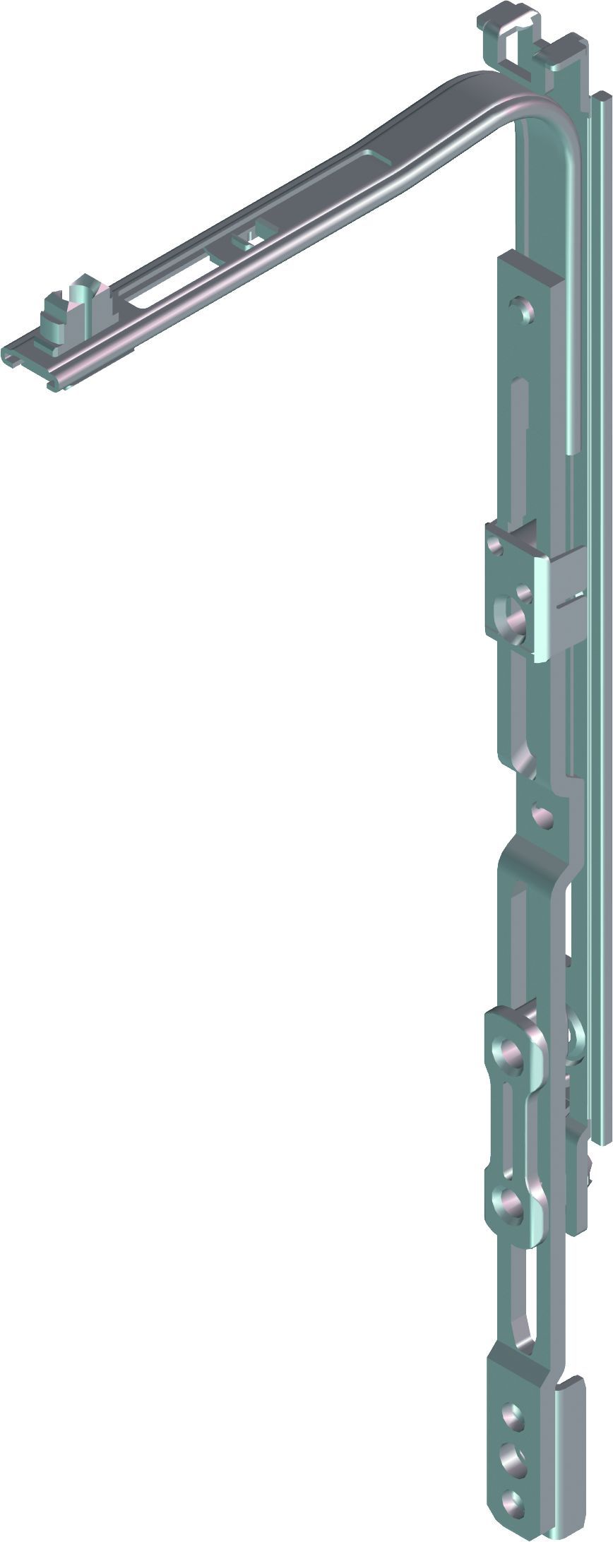 De schaar hoekoverbrenger wordt aan de bovenzijde van het raam gemonteerd en vormt de verbinding tussen de schaararm en de beslagcomponenten aan de sluitkant. Deze variant zonder nok wordt toegepast wanneer op de hoekpositie geen aanvullend sluitpunt noodzakelijk is, bijvoorbeeld bij kleinere ramen of wanneer voldoende sluitpunten via verlengstukken zijn gerealiseerd.