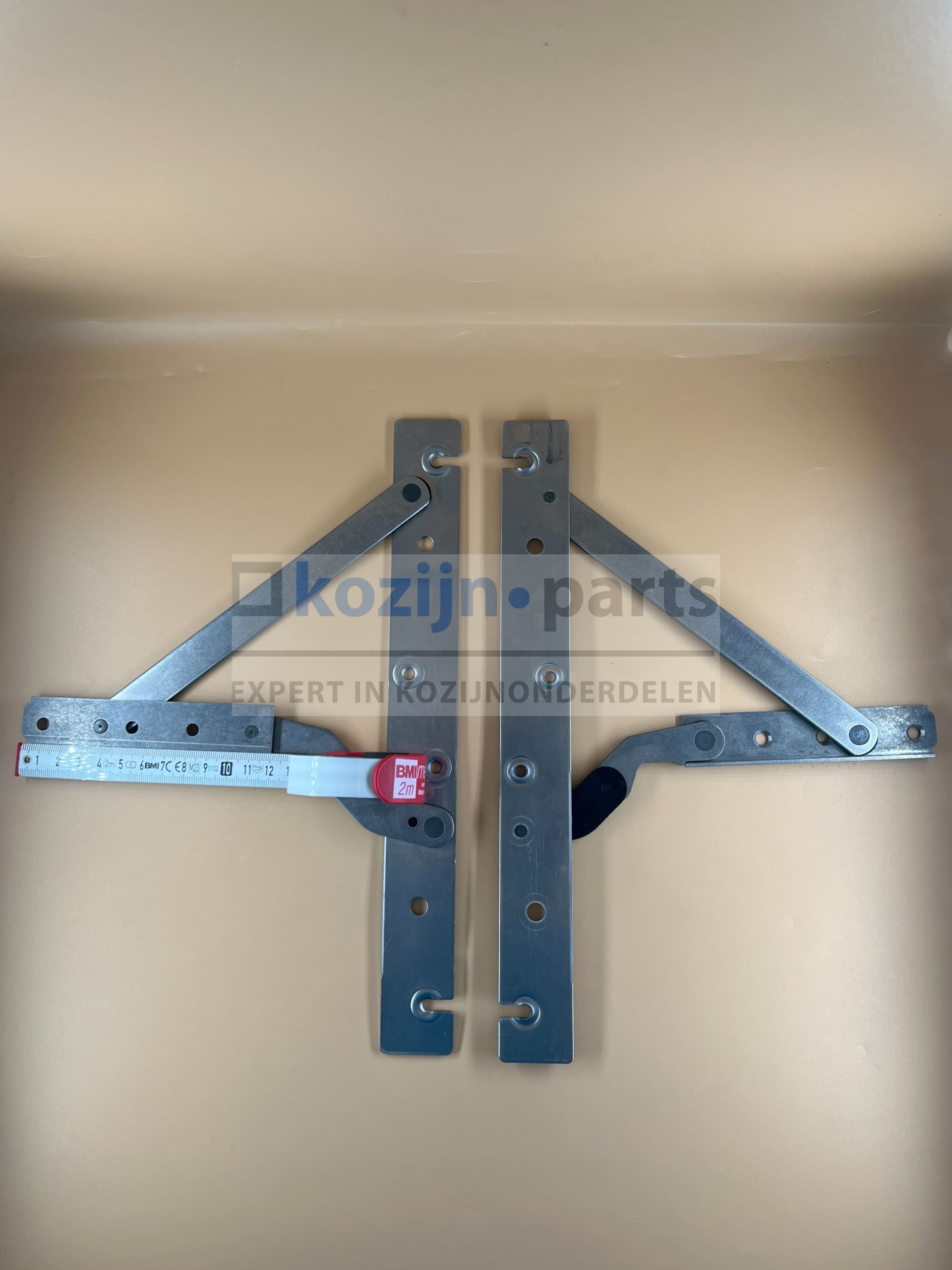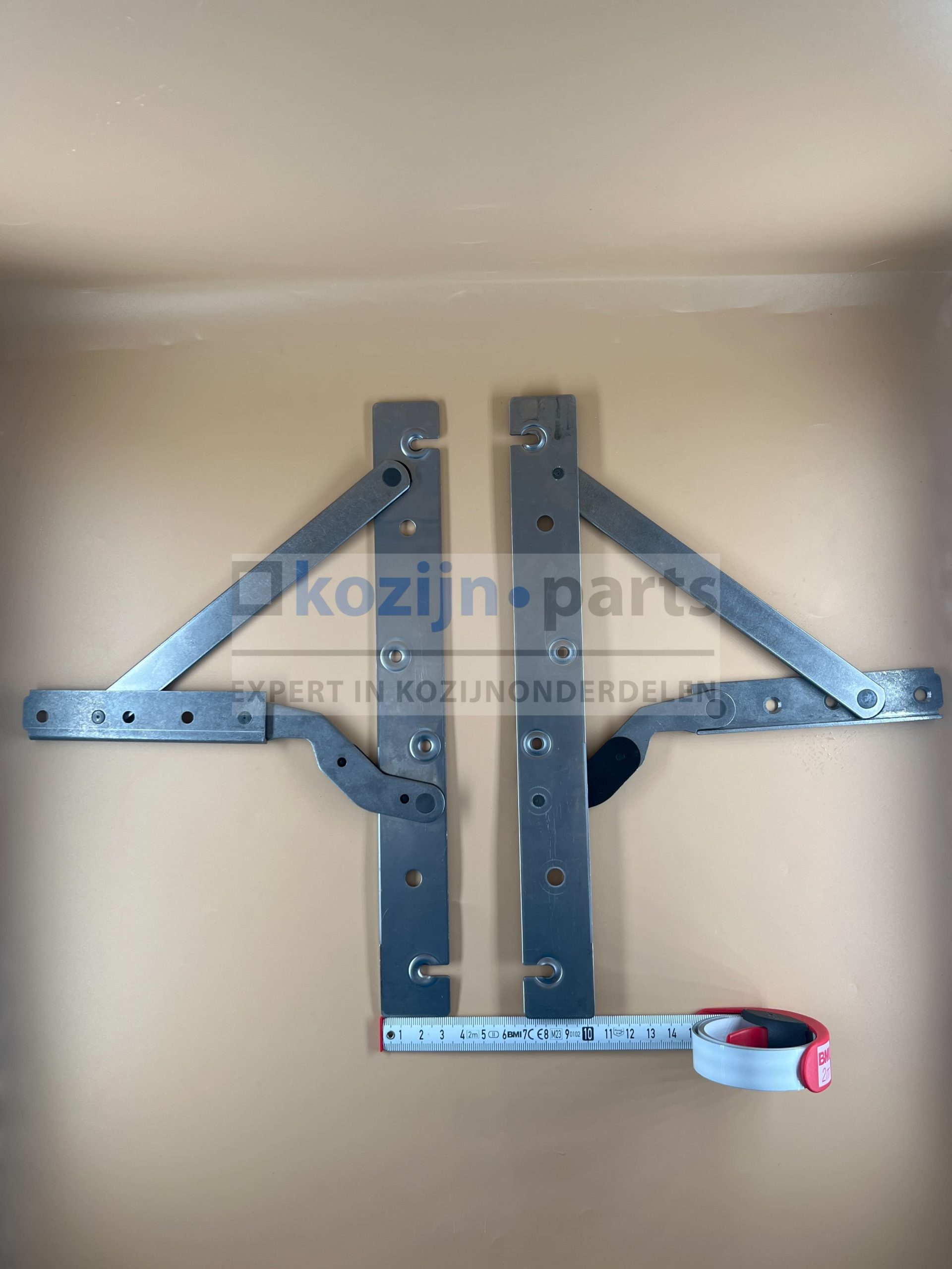 Deze schaarscharnieren set wordt toegepast bij het ophangen van draai- en kiepramen in houten en kunststof kozijnen. Met een draagvermogen tot 40kg is de set geschikt voor standaard raamvleugels. De RVS-uitvoering zorgt voor een corrosiebestendige werking, ook in vochtige omstandigheden.