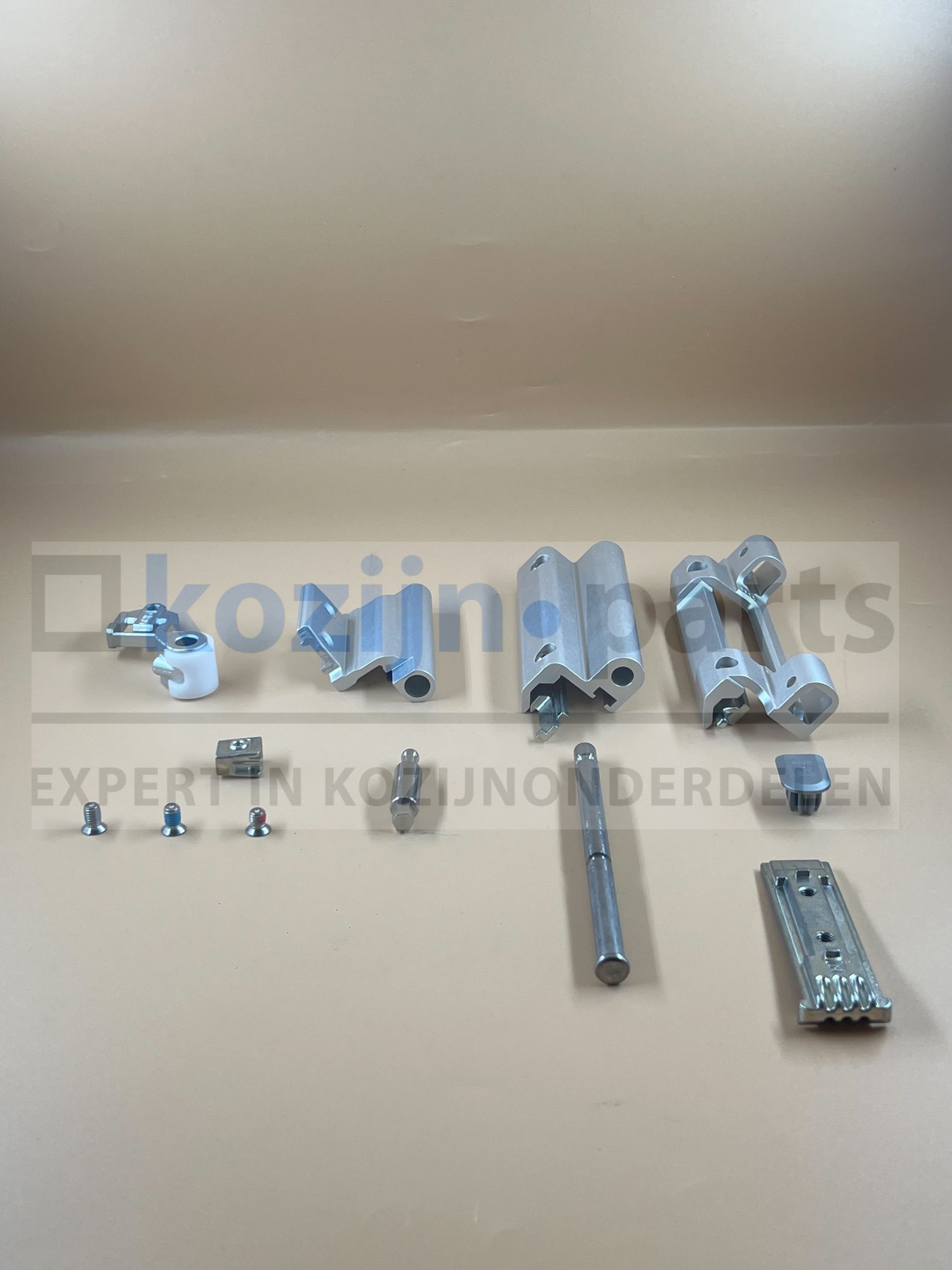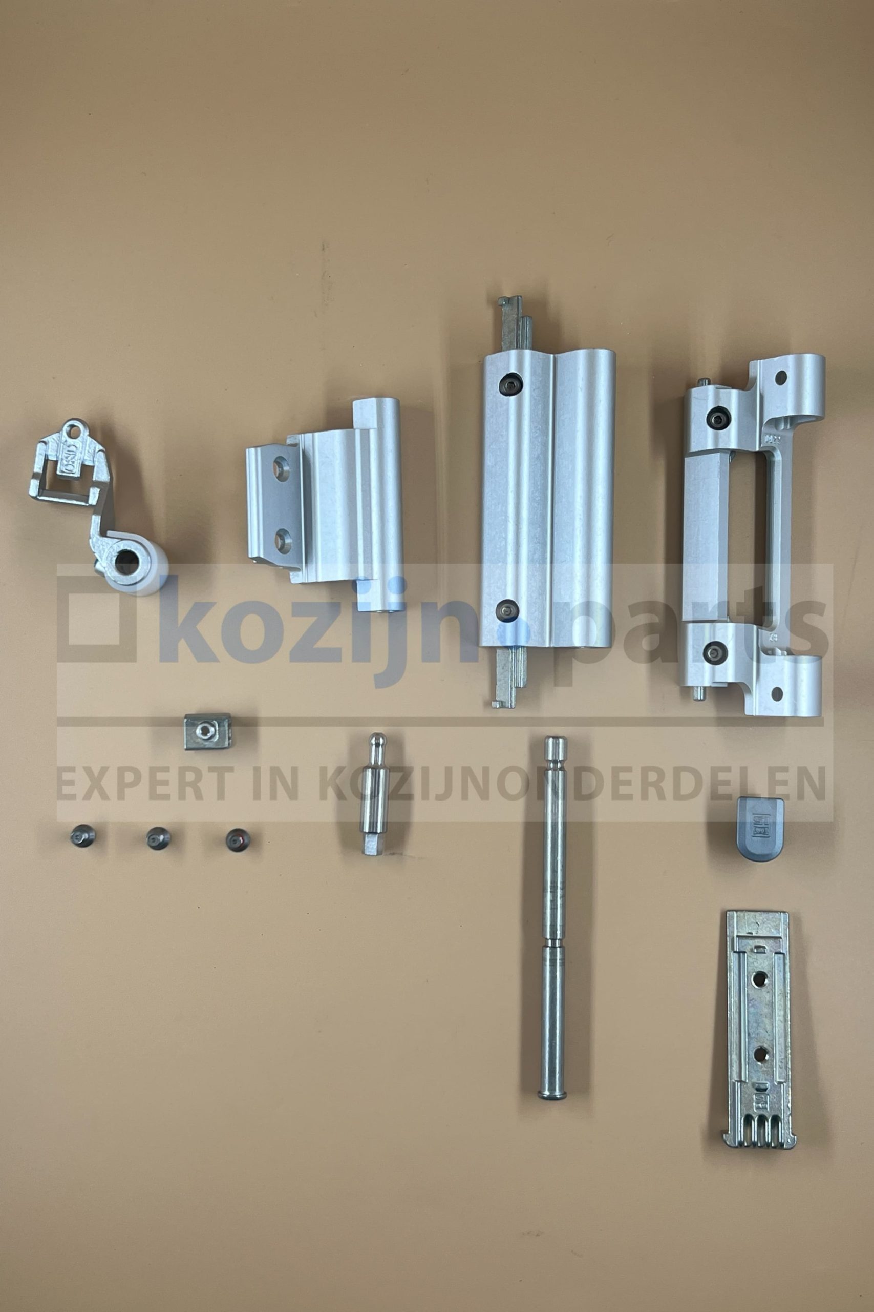 - Inhoud: onderscharnier kozijndeel, onderscharnier vleugeldeel, bovenscharnier kozijndeel, bovenscharnier vleugeldeel