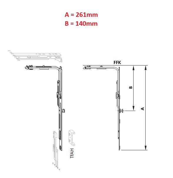 De hoekoverbrenger wordt toegepast aan de hangzijde van draai-kiepramen en dient gekoppeld te worden aan de schaarvergrendeling. Het verlengbare ontwerp maakt het onderdeel geschikt voor smalle en lage vleugels binnen het beslaghoogtebereik van 310 tot 800mm, toepasbaar in hout- en kunststof kozijnen.