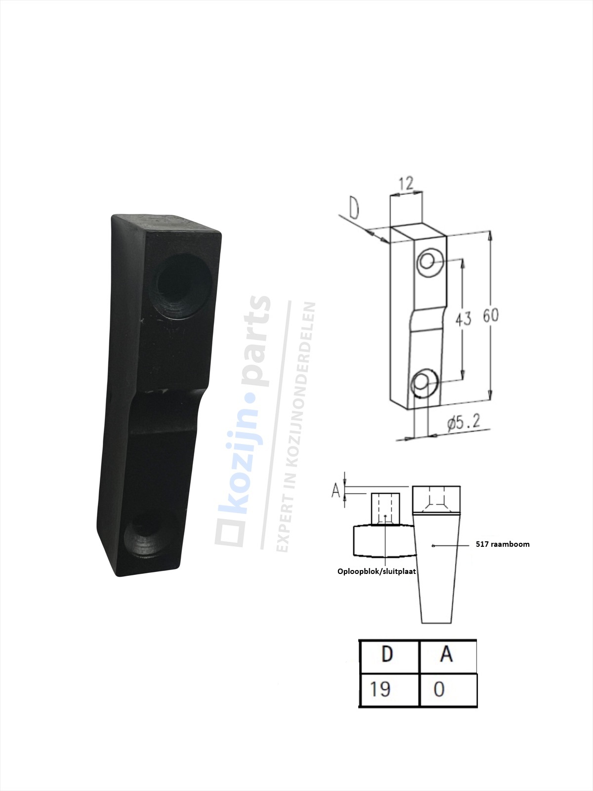 Het SOBINCO oploopblok/sluitplaat van 19 mm hoog is een onderdeel voor de sluiting van aluminium draairamen uitgevoerd met de 517 raamboom. De hogere uitvoering van 19 mm is bedoeld voor situaties waar een grotere opstandhoogte vereist is. De zwarte afwerking biedt een strakke visuele aansluiting op donkere kozijnen.