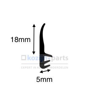 Stolpdichting voor houten profielen, vleugelaanslag 18mm en 5mm groefdikte.