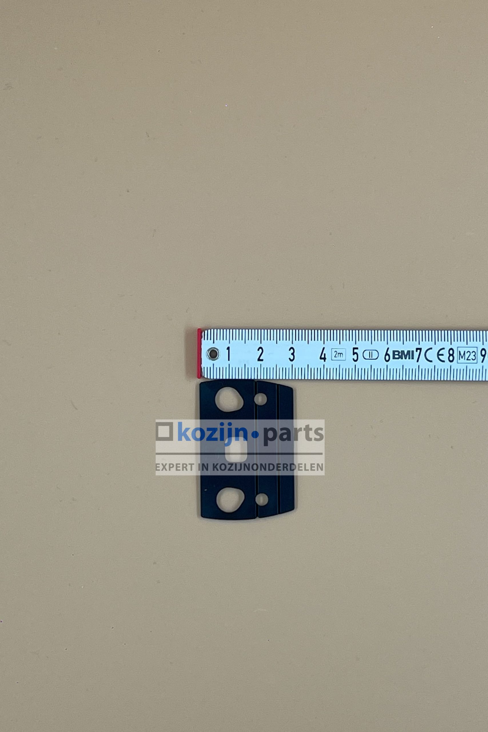 De WHB vulplaat is een aanvullend component bedoeld om paddenstoelnok sluitplaten van Winkhaus en Buva op te vullen en op hoogte te brengen. Met een afmeting van 45x30x1,0mm biedt de vulplaat een compacte oplossing om de sluitplaat exact in lijn te brengen met de paddenstoelnok, voor een soepel sluitende en goed afgestelde raamvergrendeling.